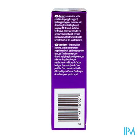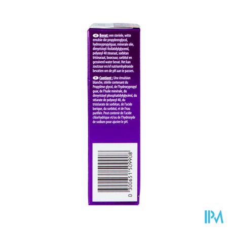 Ingrediënten: Propyleenglycol, hydroxypropylguar, viscous para, dimyristoyl phosphatidylglycerol, polyoxyl 40 stearaat, sorbitantristearaat, boorzuur, sorbitol, dinatriumedetaat en gezuiverd water.